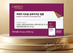 [SRT(에스알 타임스) 방석현 기자] 동국제약(대표이사 송준호)은 리포좀 제형 기술을 적용해 체내 흡수율을 높인 ‘마데카 리포좀 글루타치온 필름’을 출시했다고 19일 밝혔다.‘마데카 리포좀 글루타치온 필름’은 순도 90%의 L-리포좀 글루타치온 효모추출물 150mg, 마데카 이너뷰티의 시그니처 포뮬러 병풀추출물(센텔라인) 20mg을 함유했다. 부원료인 리포좀 레티놀, 리포좀 비타민C, L-시스테인의 시너지 배합으로 피부 속 세포를 탄탄하게 만들어 주고 항산화 작용을 촉진한다.리포좀은 인체의 세포막과 유사한 인지질 이중층 구조를 가