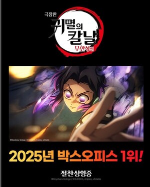 [SRT(에스알 타임스) 심우진 기자] '극장판 귀멸의 칼날: 무한성편'이 올해 한국 전체 박스오피스 흥행 1위에 등극했다.영화관입장권 통합전산망(22일 기준)에 따르면 지난 8월 22일 개봉한 '극장판 귀멸의 칼날: 무한성편'이 누적 관객 수 564만1,537명을 기록하며, 한국영화 '좀비딸'의 최종 흥행 성적인 563만7,455명을 제치고 2025년 국내 전체 박스오피스 1위를 차지했다. 앞서 '아바타'(2010), '트랜스포머 3'(2011), '스파이더맨: 노 웨이 홈'(2021) 등 해외 실사영화가 한국 박스오피스 연간 흥
