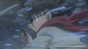 [SRT(에스알 타임스) 심우진 기자] 국립천문대 노베야마에 괴한이 침입한 사건을 조사하던 칸스케 형사(현경수)는 10개월 전 총격 피습으로 잃은 왼쪽 눈에 큰 통증을 느끼며 괴로워한다.그날 밤, 모리 코고로 탐정(이정구)에게 옛 동료 와니 형사가 오랜만에 연락해온다. 나가노현 눈사태 사고의 내막을 조사하고 있던 그는 모리 탐정에게 다급하게 만나줄 것을 부탁한다. 약속 당일, 코난(김선혜)은 모리 탐정을 따라서 와니 형사와의 약속 장소로 가지만, 그곳에서 갑자기 의문의 총성이 울려 퍼지면서 기억과 진실을 둘러싼 추리 활극이 시작된다