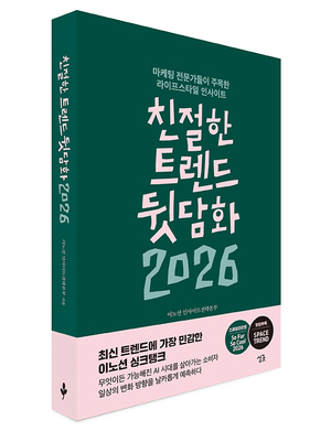 [SRT(에스알 타임스) 서해 기자] 도서출판 싱긋이 트렌드 인사이트 시리즈 '친절한 트렌드 뒷담화 2026'을 최근 출간했다.이번 신간은 인공지능(AI)이 일상과 비즈니스 전반에 깊숙이 스며든 시대 소비자의 마음이 어디로 향하고 있는지를 실질적 데이터와 현장 사례로 분석한 보고서다. 집필은 국내 대표 광고대행사 이노션의 싱크탱크 조직인 인사이트전략본부가 맡았다.이노션 인사이트전략본부는 브랜드, 데이터, 리서치, 트렌드 네 팀으로 구성된 21인의 전문가 그룹이다. 매년 트렌드 리포트를 발간하며 기업과 브랜드의 전략 수립을 지원해 온