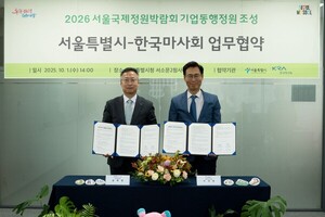 [SRT(에스알 타임스) 전지선 기자] 한국마사회는 이달 1일 서울시청 서소문2청사에서 서울특별시와 ‘2026 서울국제정원박람회 1호 동행정원 조성을 위한 업무협약’을 체결했다고 20일 밝혔다.이번 협약은 2026년 서울숲에서 열리게 될 서울국제정원박람회에서 한국마사회와 서울시가 협력해 ‘한국마사회 동행정원’을 조성하고, 도심 승마 체험 프로그램을 선보이는 등 녹지 확충을 통한 ESG경영 및 사회공헌을 실천하는 것을 목적으로 한다.이날 협약식에는 한국마사회 송대영 경마본부장, 시설처장, 서울주로환경부장 등 5명과 서울시 이수연 정원