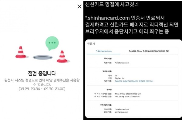 온라인 커뮤니티에서 신한카드 고객들은 “하필이면 명절 연휴에 (신한카드의) 온·오프라인 결제가 모두 안 된다니 믿을 수 없다” 등의 불편을 호소했다.