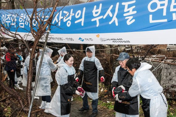 아주그룹(회장 문규영)의 비영리기관인 아주복지재단은 서울 서초구 방배동 전원마을 등 같은 날 전국의 사업장 일대 저소득 및 독거노인 가정에 연탄나눔 활동을 전개하는 ‘사랑의 부싯돌’ 행사를 펼쳤다고 3일 밝혔다.