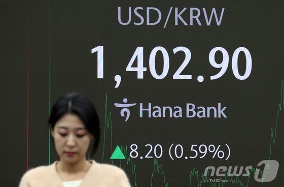 13일 서울외환시장에 따르면 지난 12일 원·달러 환율(오후 3시30분 기준)은 전날보다 8.8원 상승(원화 가치 하락)한 1,403.5원에 주간거래를 마쳤다. 주간거래 종가 기준으로 환율이 1,400원대로 마감한 것은 2022년 11월 7일(1401.2원) 이후 약 2년 만이다. 이날 새벽 2시에 마감한 전날 야간거래 종가도 달러당 1,401원으로 이미 1,400원을 넘어섰다.